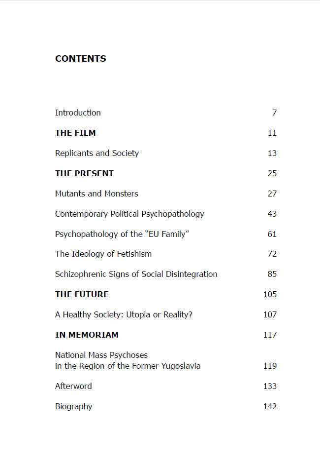 Is today’s world film or reality? Who are the replicants, mutants and monsters in modern society? Can we recognize the contemporary political psychopathology, the schizophrenic signs of the social disintegration…? Do we live in the ideology of fetishism? Is there any chance for a healthy society?